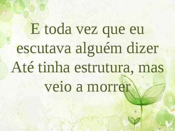 - E toda vez que eu escutava alguém dizerAté tinha estrutura, mas veio a morrer