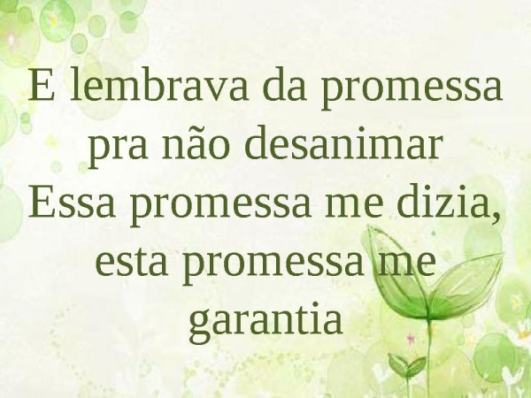- E lembrava da promessa pra não desanimarEssa promessa me dizia, esta promessa me garantia