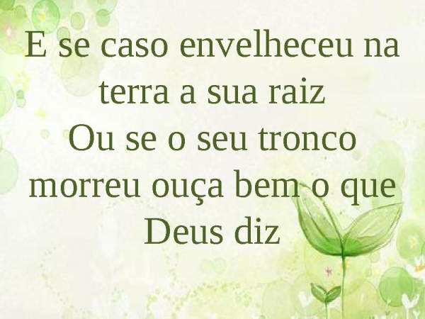 - E se caso envelheceu na terra a sua raizOu se o seu tronco morreu ouça bem o que Deus diz