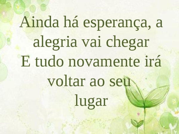 - Ainda há esperança, a alegria vai chegarE tudo novamente irá voltar ao seu lugar