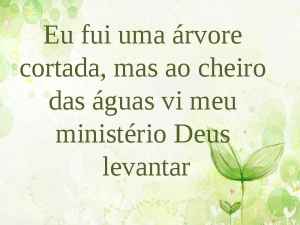 - Eu fui uma árvore cortada, mas ao cheiro das águas vi meu ministério Deus levantar