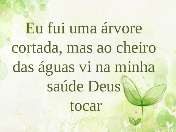 - Eu fui uma árvore cortada, mas ao cheiro das águas vi na minha saúde Deus tocar