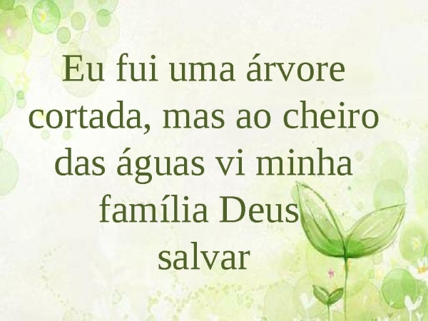 - Eu fui uma árvore cortada, mas ao cheiro das águas vi minha família Deus salvar