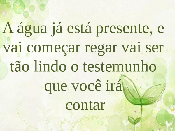 - A água já está presente, e vai começar regar vai ser tão lindo o testemunho que você irá contar