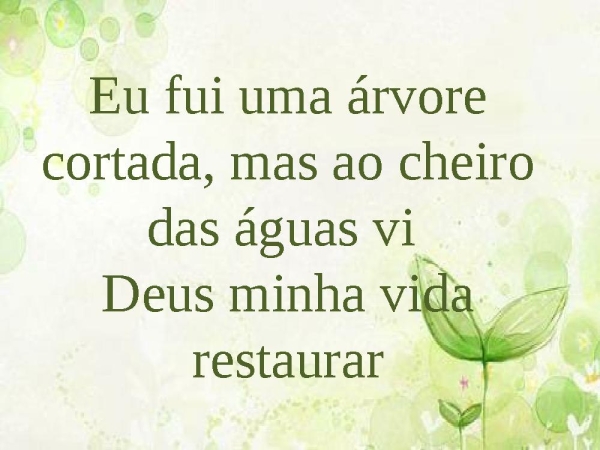 - Eu fui uma árvore cortada, mas ao cheiro das águas vi Deus minha vida restaurar