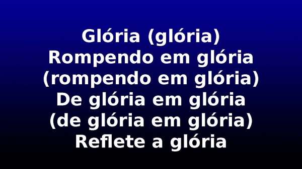 - Glória (glória)Rompendo em glória (rompendo em glória)De glória em glória (de glória em glória)Reflete a glória
