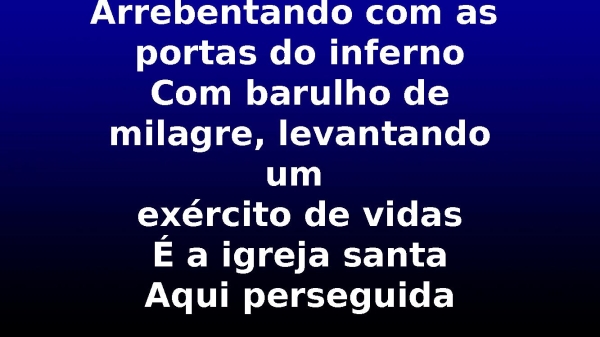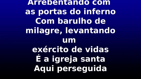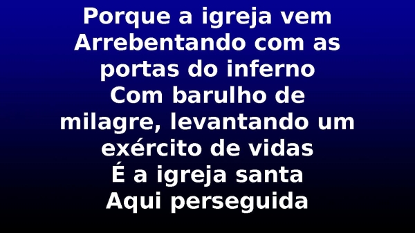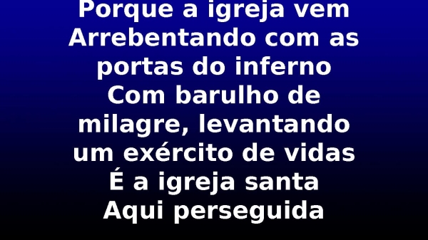 - Porque a igreja vemArrebentando com as portas do infernoCom barulho de milagre, levantando um exército de vidasÉ a igreja santaAqui perseguida