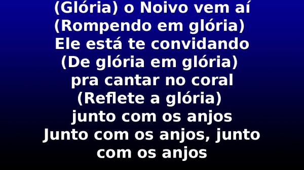 - (Glória) o Noivo vem aí(Rompendo em glória) Ele está te convidando(De glória em glória) pra cantar no coral(Reflete a glória) junto com os anjosJunto com os anjos, junto com os anjos