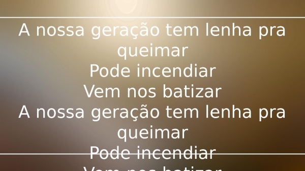 - A nossa geração tem lenha pra queimarPode incendiarVem nos batizarA nossa geração tem lenha pra queimarPode incendiarVem nos batizar