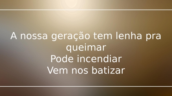 - A nossa geração tem lenha pra queimarPode incendiarVem nos batizar