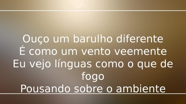 - Ouço um barulho diferenteÉ como um vento veementeEu vejo línguas como o que de fogoPousando sobre o ambiente