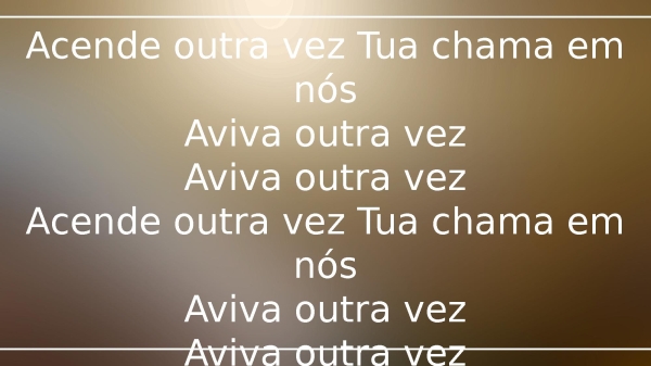 - Acende outra vez Tua chama em nósAviva outra vezAviva outra vezAcende outra vez Tua chama em nósAviva outra vezAviva outra vezAcende outra vez Tua chama em nósAviva outra vezAviva outra vez