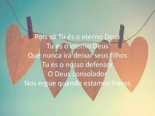 - Pois só Tu és o eterno DeusTu és o eterno DeusQue nunca irá deixar seus filhosTu és o nosso defensorO Deus consoladorNos ergue quando estamos fracos