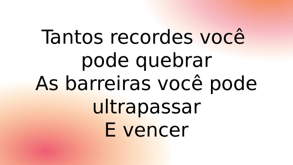 - Tantos recordes você pode quebrarAs barreiras você pode ultrapassarE vencer