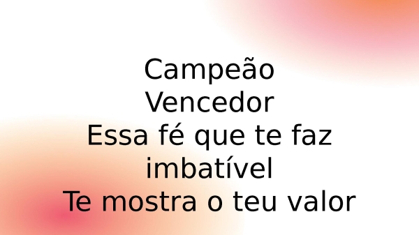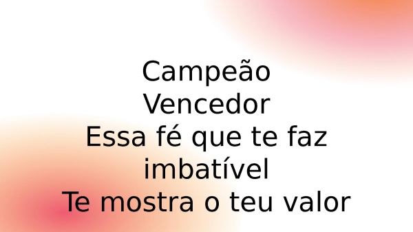 - CampeãoVencedorEssa fé que te faz imbatívelTe mostra o teu valor