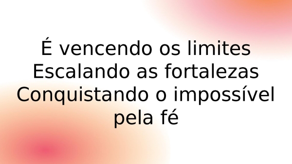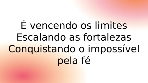 - É vencendo os limitesEscalando as fortalezasConquistando o impossível pela fé