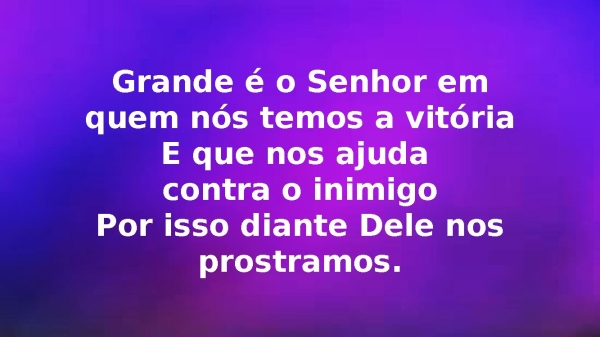 - Grande é o Senhor em quem nós temos a vitóriaE que nos ajuda contra o inimigoPor isso diante Dele nos prostramos.