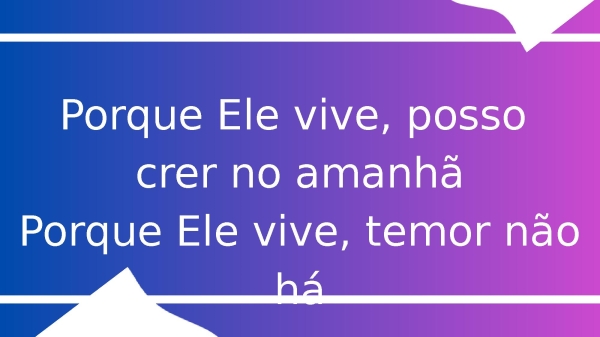 - Porque Ele vive, posso crer no amanhãPorque Ele vive, temor não há