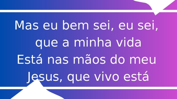 - Mas eu bem sei, eu sei, que a minha vidaEstá nas mãos do meu Jesus, que vivo está