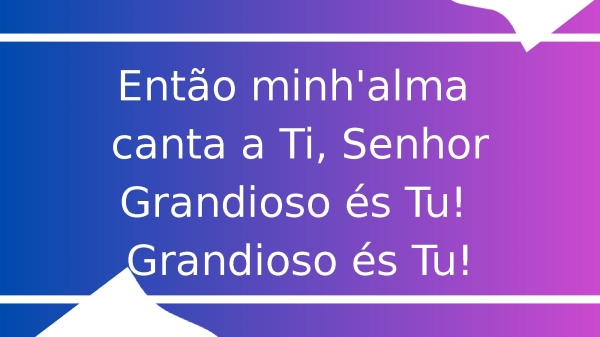 - Então minh'alma canta a Ti, SenhorGrandioso és Tu! Grandioso és Tu!