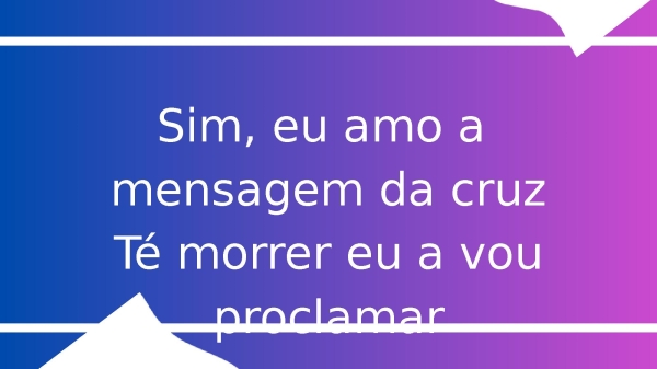 - Sim, eu amo a mensagem da cruzTé morrer eu a vou proclamar