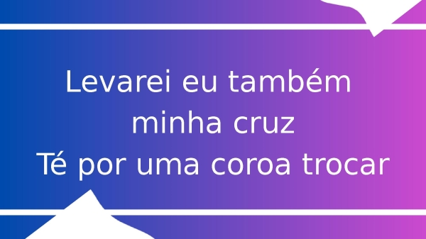 - Levarei eu também minha cruzTé por uma coroa trocar