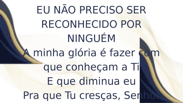 - EU NÃO PRECISO SER RECONHECIDO POR NINGUÉMA minha glória é fazer com que conheçam a TiE que diminua euPra que Tu cresças, SenhorMais e mais