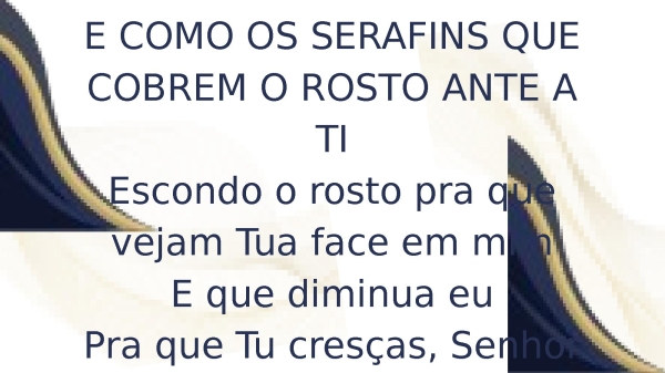 - E COMO OS SERAFINS QUE COBREM O ROSTO ANTE A TIEscondo o rosto pra que vejam Tua face em mimE que diminua euPra que Tu cresças, SenhorMais e mais