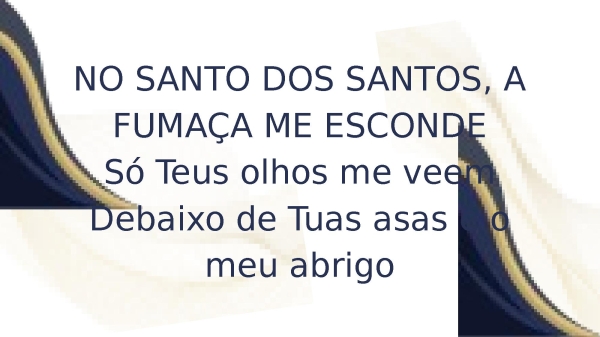 - NO SANTO DOS SANTOS, A FUMAÇA ME ESCONDESó Teus olhos me veemDebaixo de Tuas asas é o meu abrigoMeu lugar secreto
