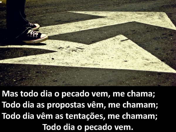 - Mas todo dia o pecado vem, me chama; Todo dia as propostas vêm, me chamam; Todo dia vêm as tentações, me chamam; Todo dia o pecado vem.
