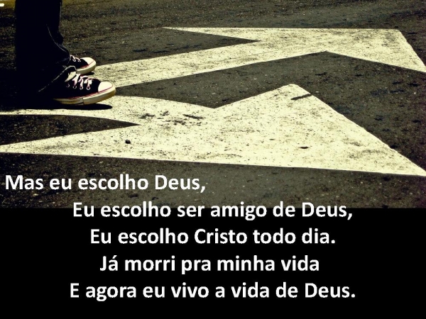 - Mas eu escolho Deus, Eu escolho ser amigo de Deus,Eu escolho Cristo todo dia.Já morri pra minha vida E agora eu vivo a vida de Deus.