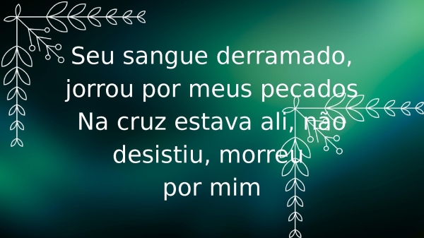 - Seu sangue derramado, jorrou por meus pecadosNa cruz estava ali, não desistiu, morreu por mim