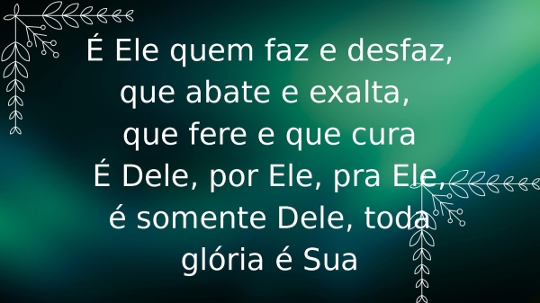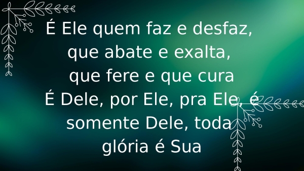 - É Ele quem faz e desfaz, que abate e exalta, que fere e que curaÉ Dele, por Ele, pra Ele, é somente Dele, toda glória é Sua