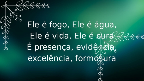 - Ele é fogo, Ele é água, Ele é vida, Ele é curaÉ presença, evidência, excelência, formosura
