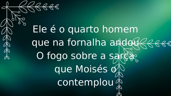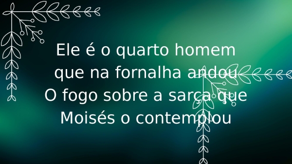 - Ele é o quarto homem que na fornalha andouO fogo sobre a sarça que Moisés o contemplou