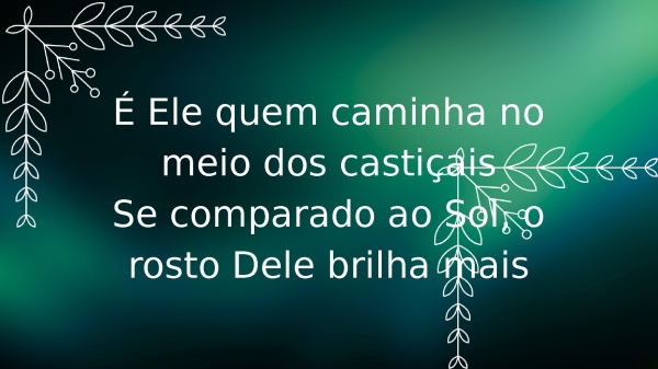 - É Ele quem caminha no meio dos castiçaisSe comparado ao Sol, o rosto Dele brilha mais