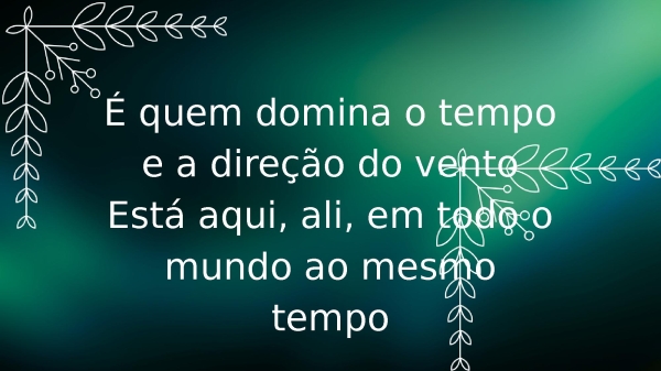 - É quem domina o tempo e a direção do ventoEstá aqui, ali, em todo o mundo ao mesmo tempo