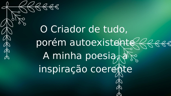 - O Criador de tudo, porém autoexistenteA minha poesia, a inspiração coerente