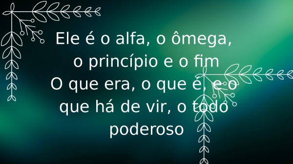 - Ele é o alfa, o ômega, o princípio e o fimO que era, o que é, e o que há de vir, o todo poderoso
