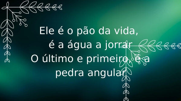 - Ele é o pão da vida, é a água a jorrarO último e primeiro, é a pedra angular