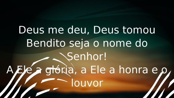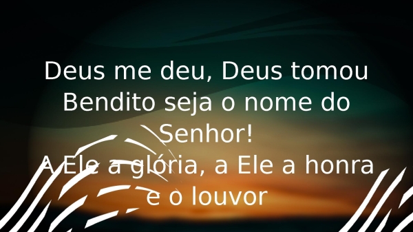 - Deus me deu, Deus tomouBendito seja o nome do Senhor!A Ele a glória, a Ele a honra e o louvor