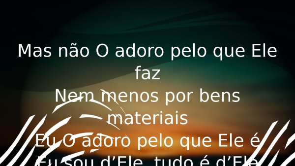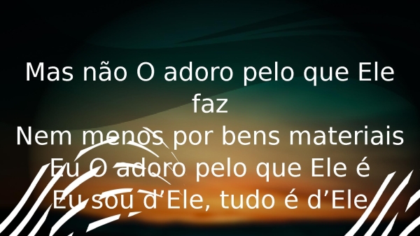 - Mas não O adoro pelo que Ele fazNem menos por bens materiaisEu O adoro pelo que Ele éEu sou d’Ele, tudo é d’Ele