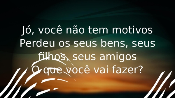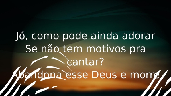 - Jó, como pode ainda adorarSe não tem motivos pra cantar?Abandona esse Deus e morre