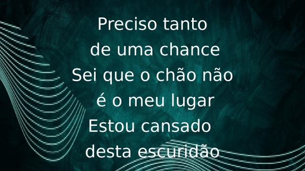 - Preciso tanto de uma chanceSei que o chão não é o meu lugarEstou cansado desta escuridão