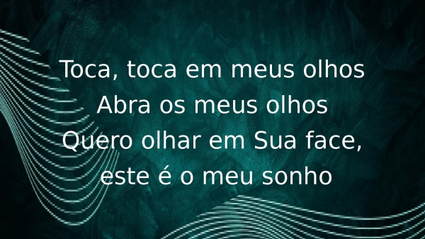 - Toca, toca em meus olhosAbra os meus olhosQuero olhar em Sua face, este é o meu sonho