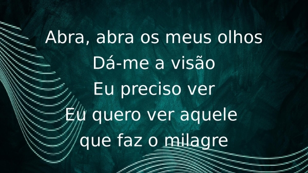 - Abra, abra os meus olhosDá-me a visãoEu preciso verEu quero ver aquele que faz o milagre