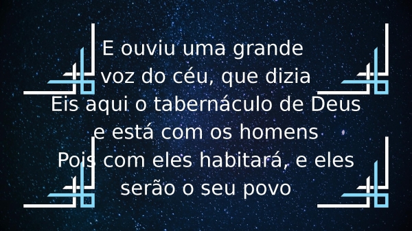 - E ouviu uma grande voz do céu, que diziaEis aqui o tabernáculo de Deus e está com os homensPois com eles habitará, e eles serão o seu povo