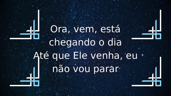 - Ora, vem, está chegando o diaAté que Ele venha, eu não vou parar
