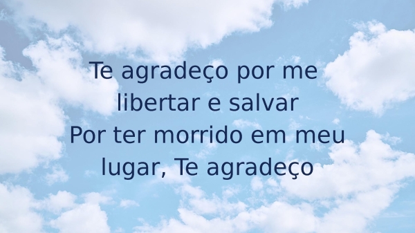 - Te agradeço por me libertar e salvarPor ter morrido em meu lugar, Te agradeço