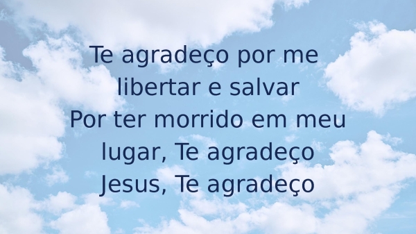 - Te agradeço por me libertar e salvarPor ter morrido em meu lugar, Te agradeçoJesus, Te agradeço